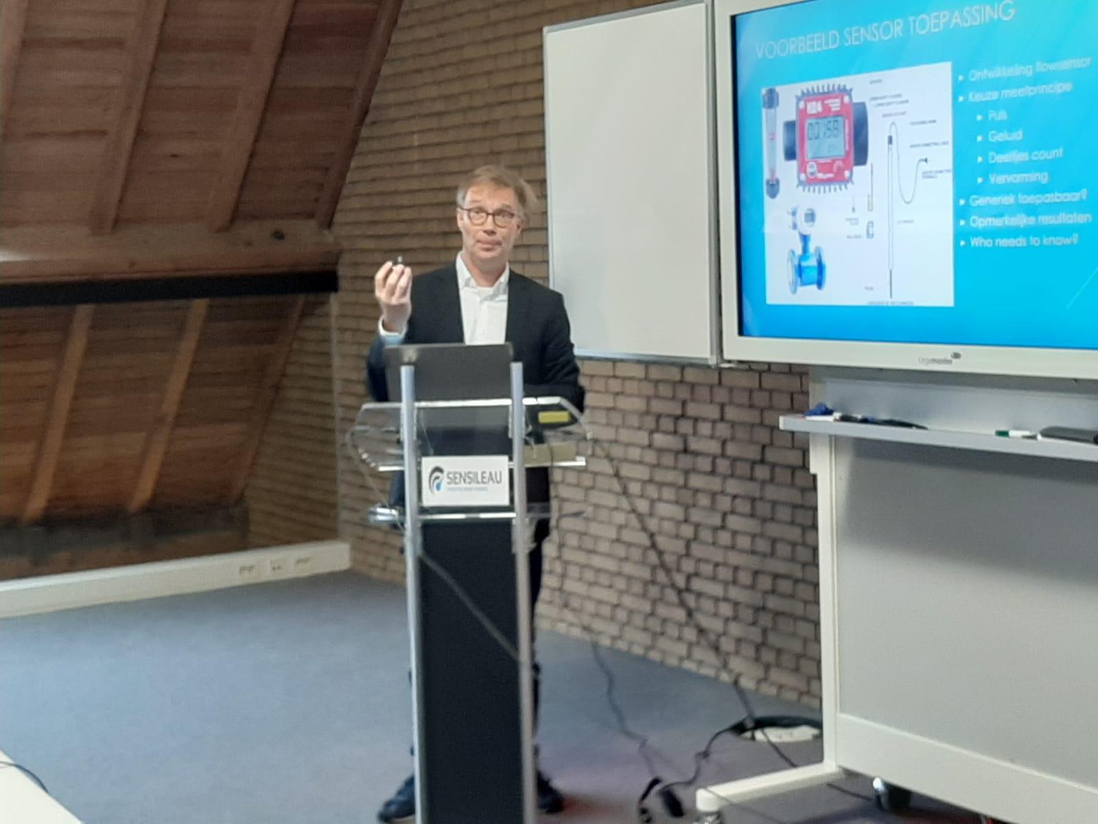 ‘s Ochtends waren ontwikkelingen in de toepassingsmogelijkheden van sensoren onderwerp van gesprek. Maurice Tax (Bright Spark) en Corina Carpentier (Sensileau) gaven in een presentatie elk hun visie daarop, waarna een discussie met de deelnemers volgde.